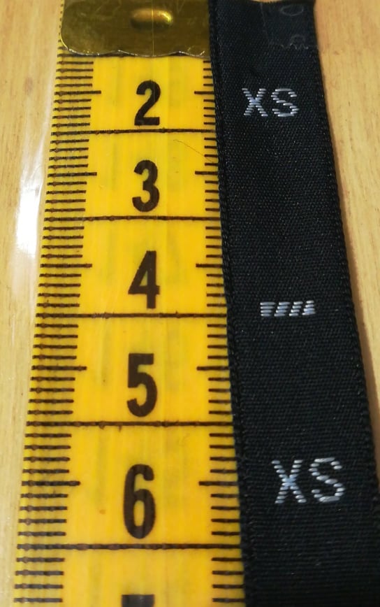 Ruban avec étiquettes pour tailles « LETTRES »
