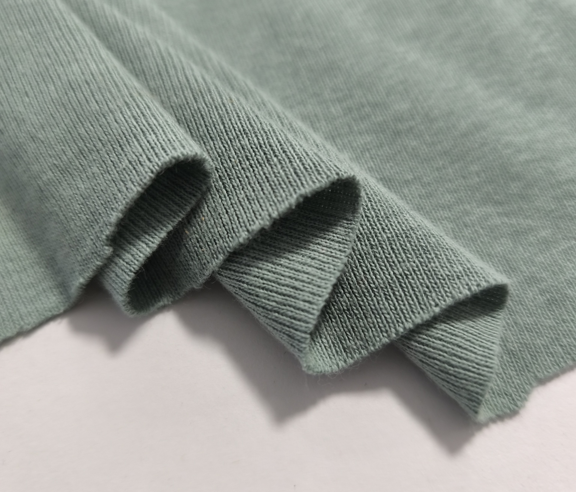 Malha fina, fresca, maleável, macia, cor opaca, sem brilho, boa elasticidade (mecânica)