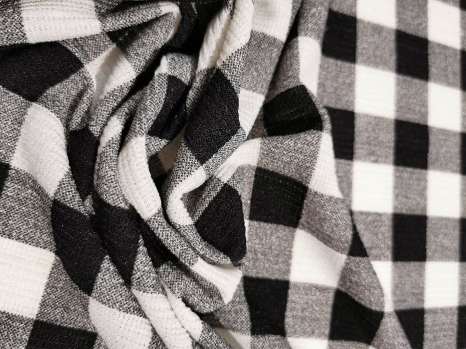 Maille côtelée texturée, fine, fraîche, bonne élasticité, malléable, douce, couleurs opaques, sans brillance.