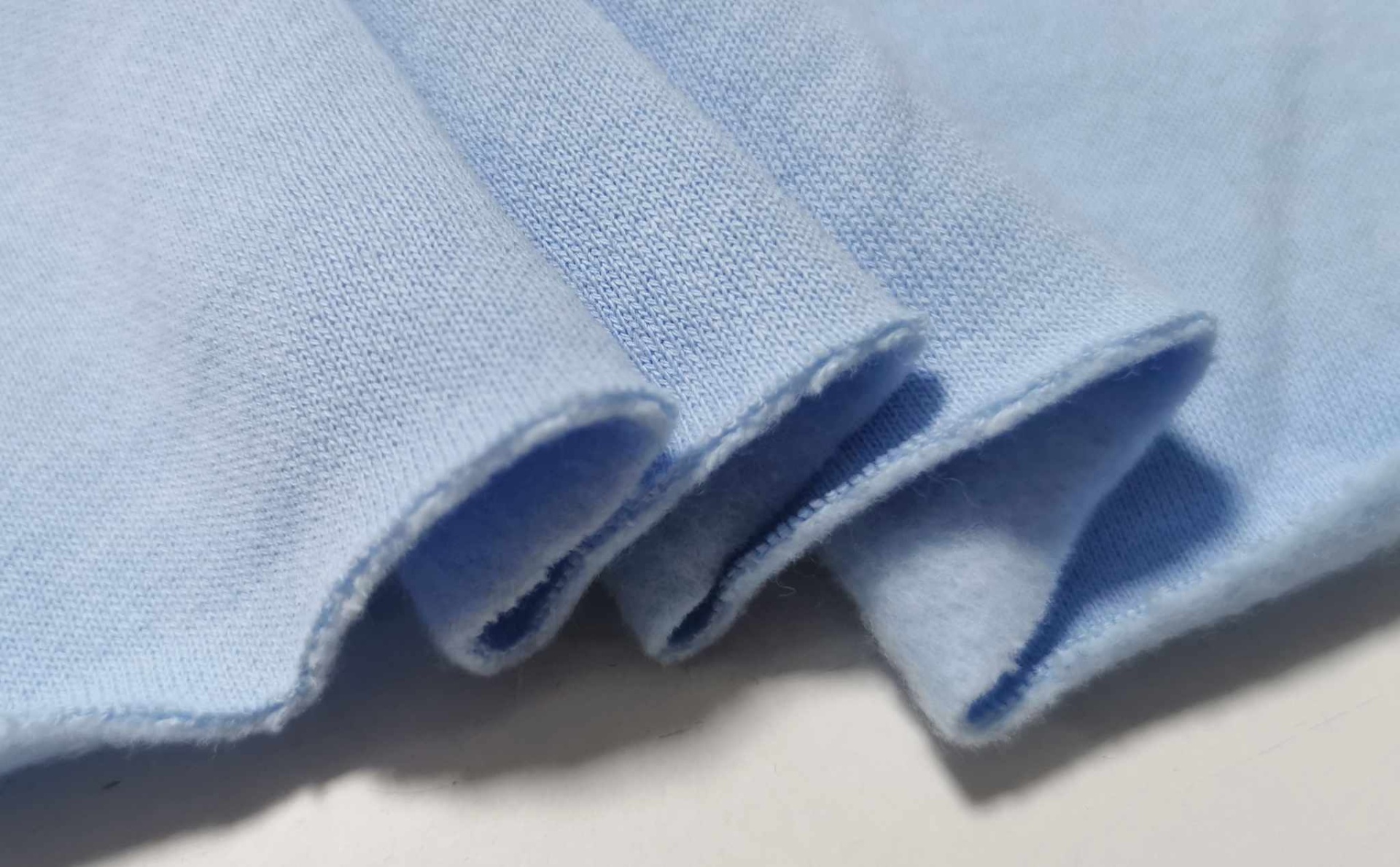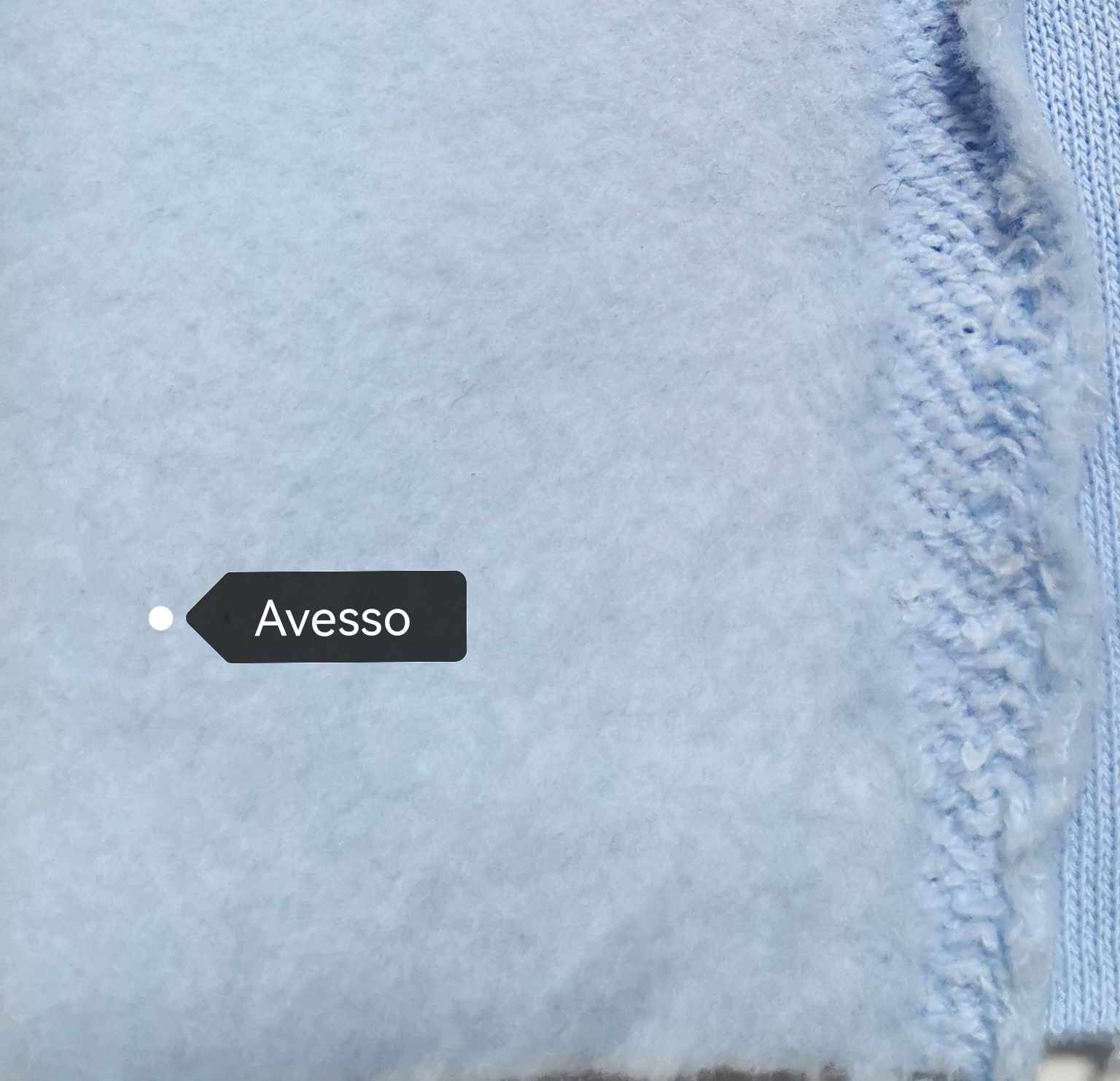 Malha bastante confortável, quente, maleável, cor opaca, sem brilho, sem elasticidade