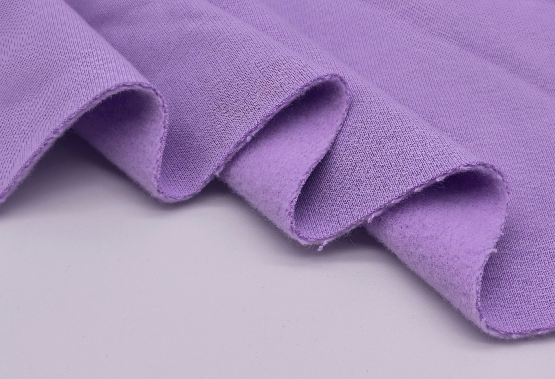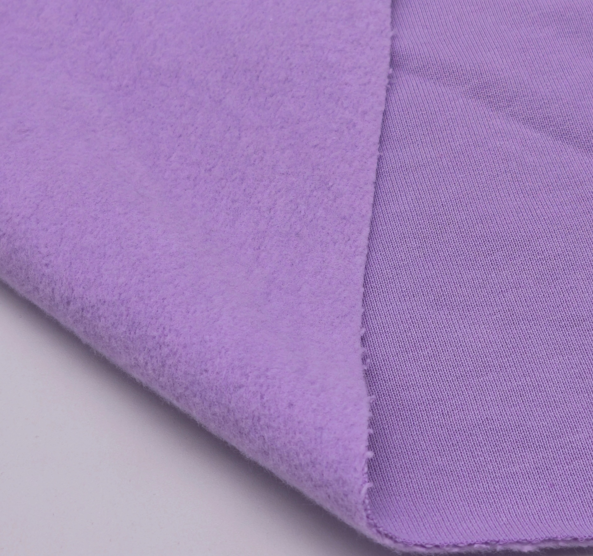 Maille de couleur lilas, douce, souple, chaude, mate, couleur opaque.