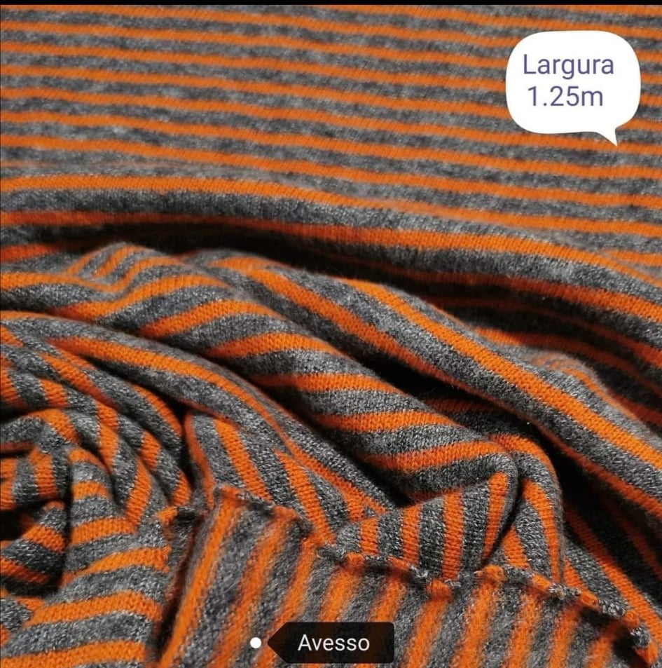 Tissu interlock coton RAYURES GRIS / ORANGE