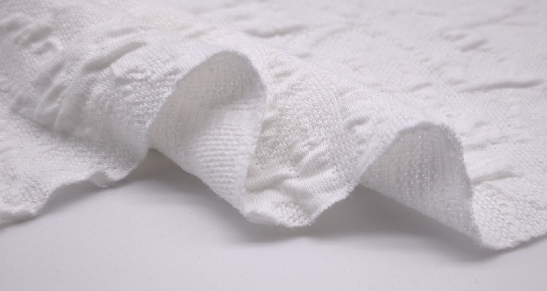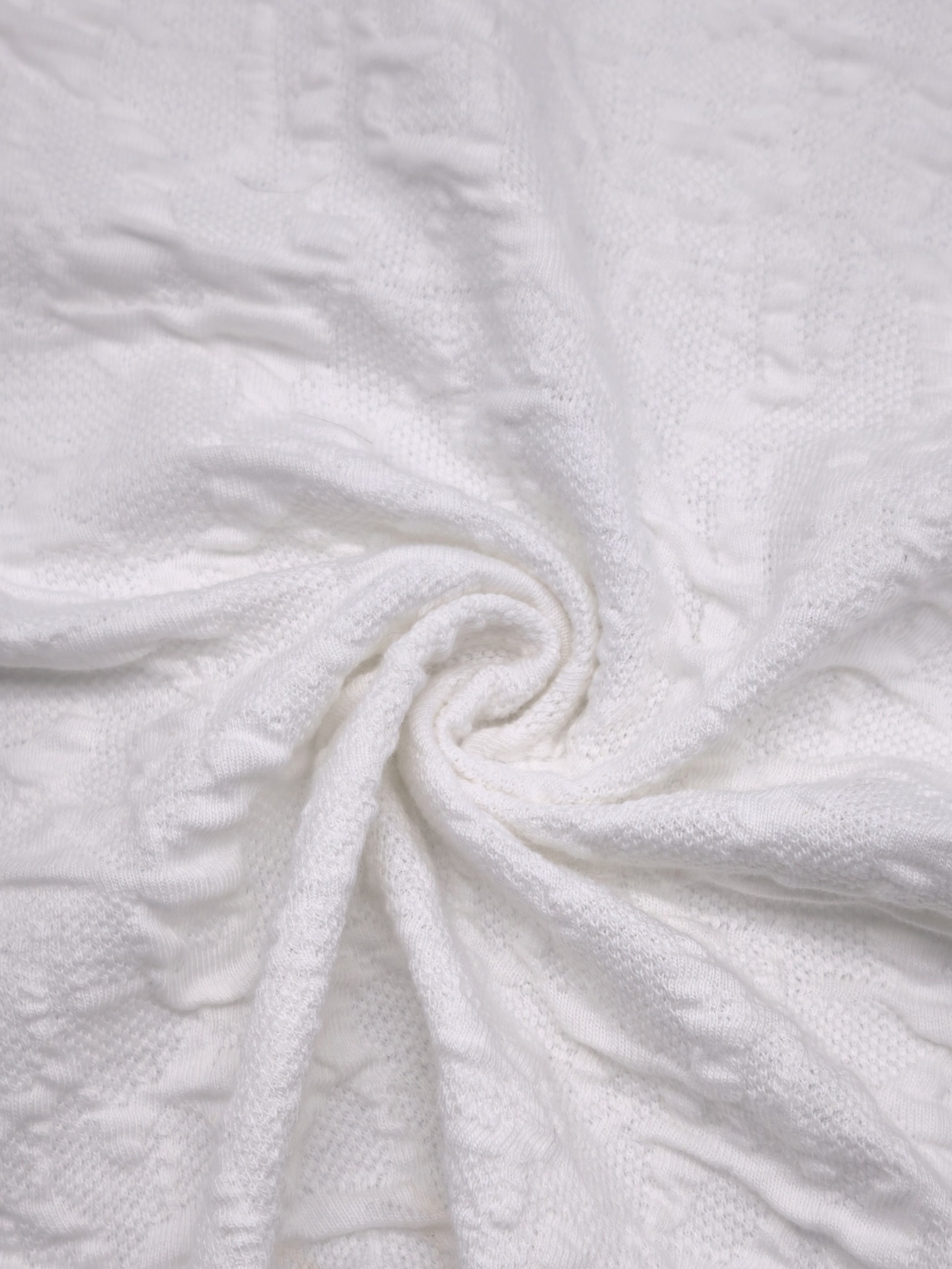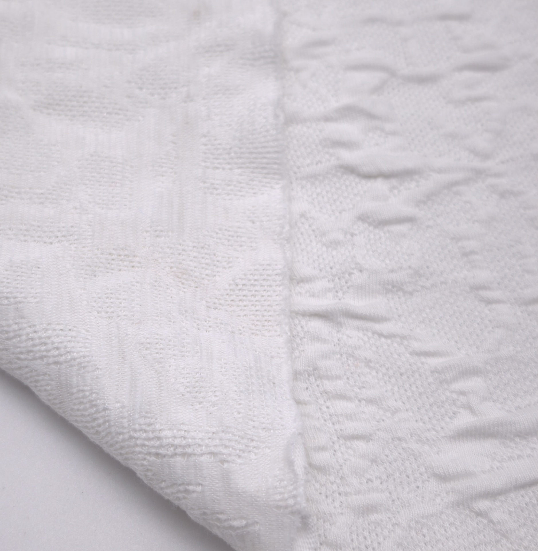 Maille texturée en relief, fine, fraîche, douce, très bonne élasticité