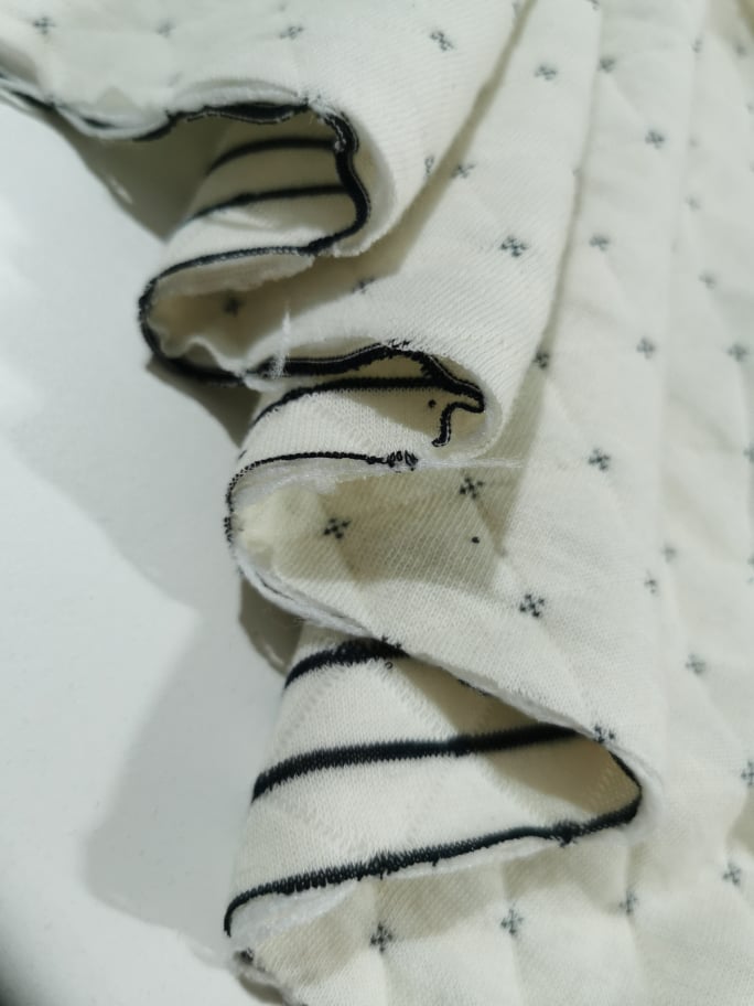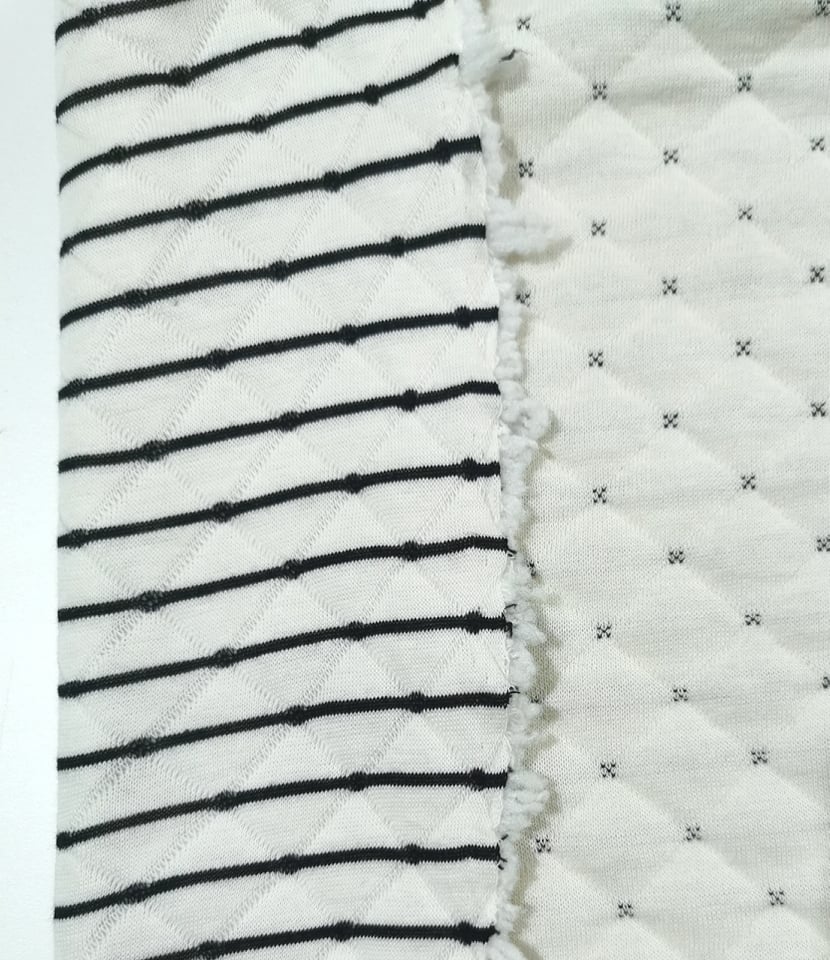 Malha texturizada em padão geométrico de lusangos, de dupla face, pode ser usada de ambos os lados, bastante suave e co enchimento