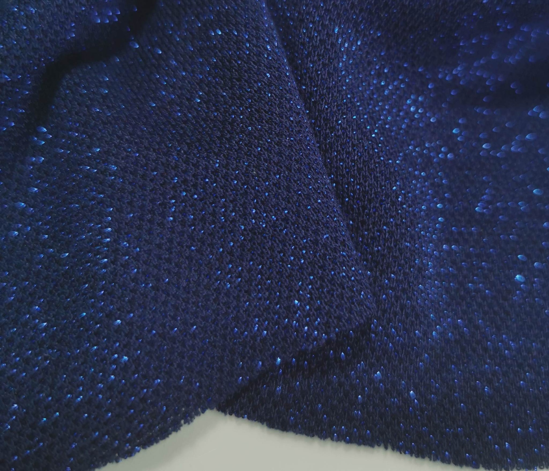 Malha de tons azuis com pequenos brilhos em azulão