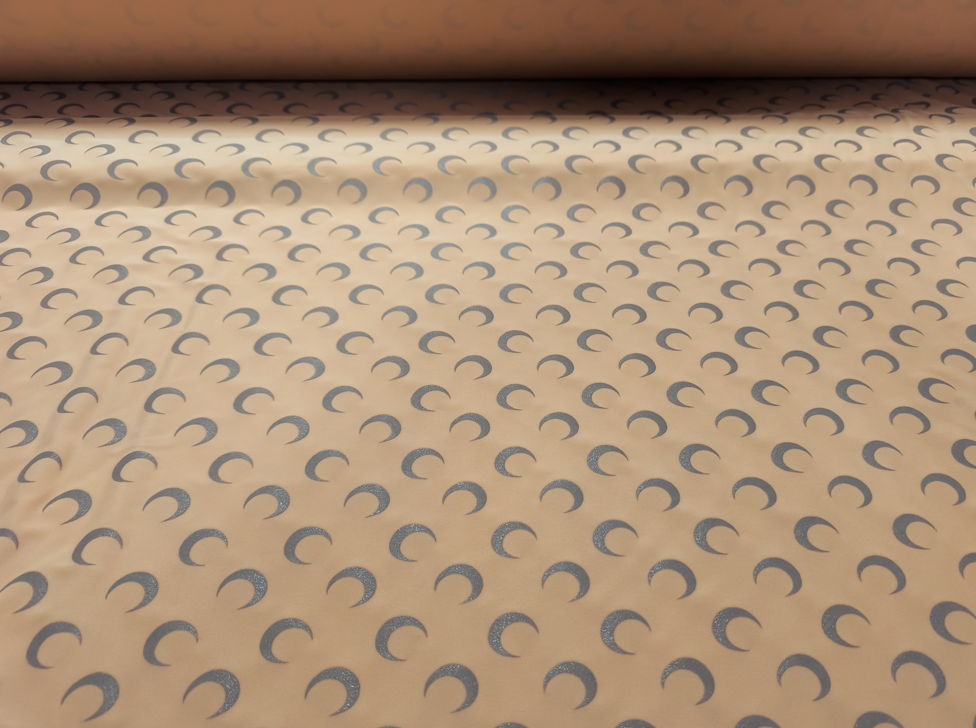 Malha no tom salmão,estrelas em tom cinza com brilho prata