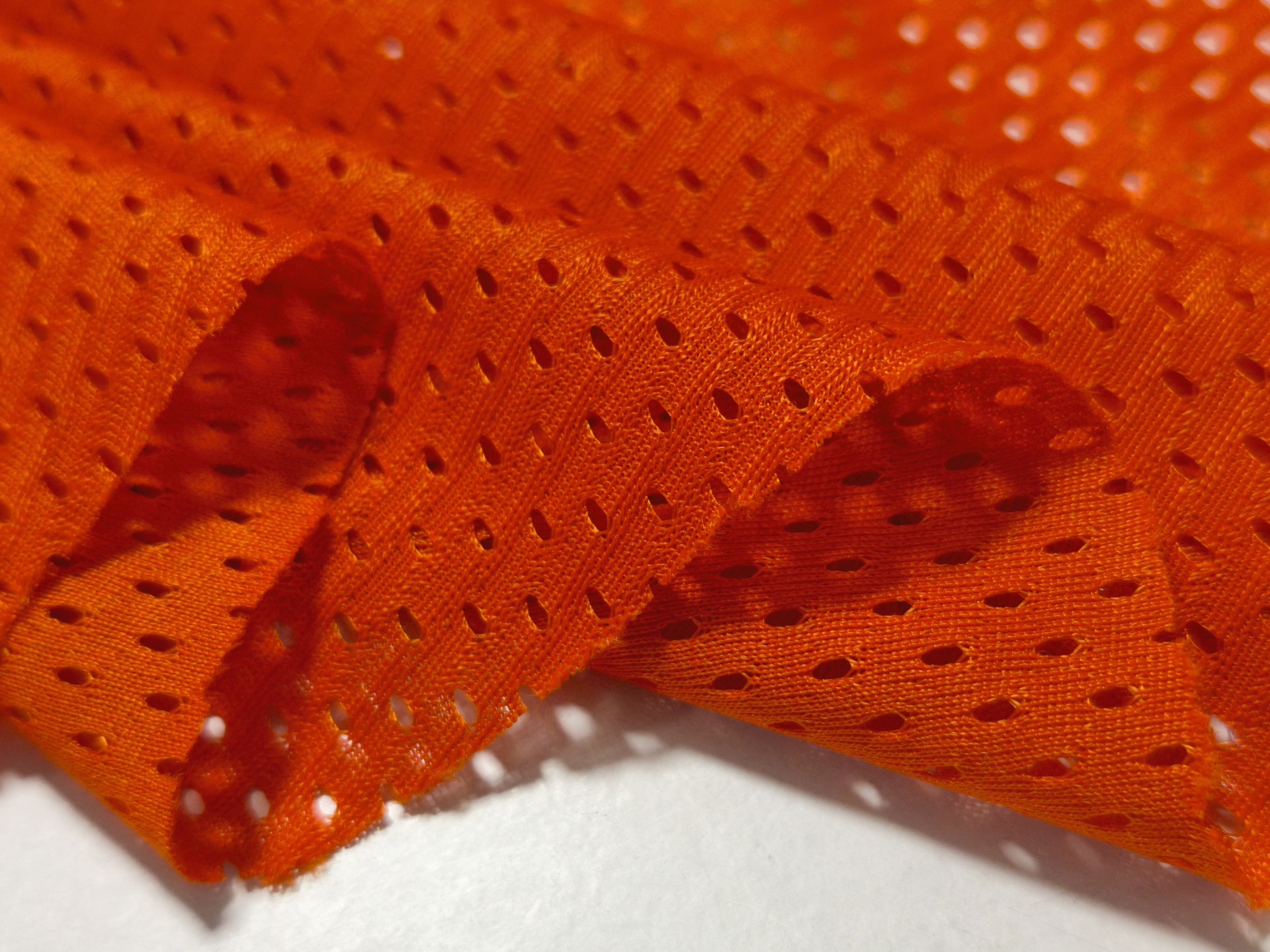 Este tecido/malha em tom laranja, devido á sua rebustez e leveza permite ser usada para diversos fins, é uma malha semitransparente, elástica, flexível tornando um tecido adequado vestuário esportivo, podendo também ser usada para forra de vestuário de desporto ou banho