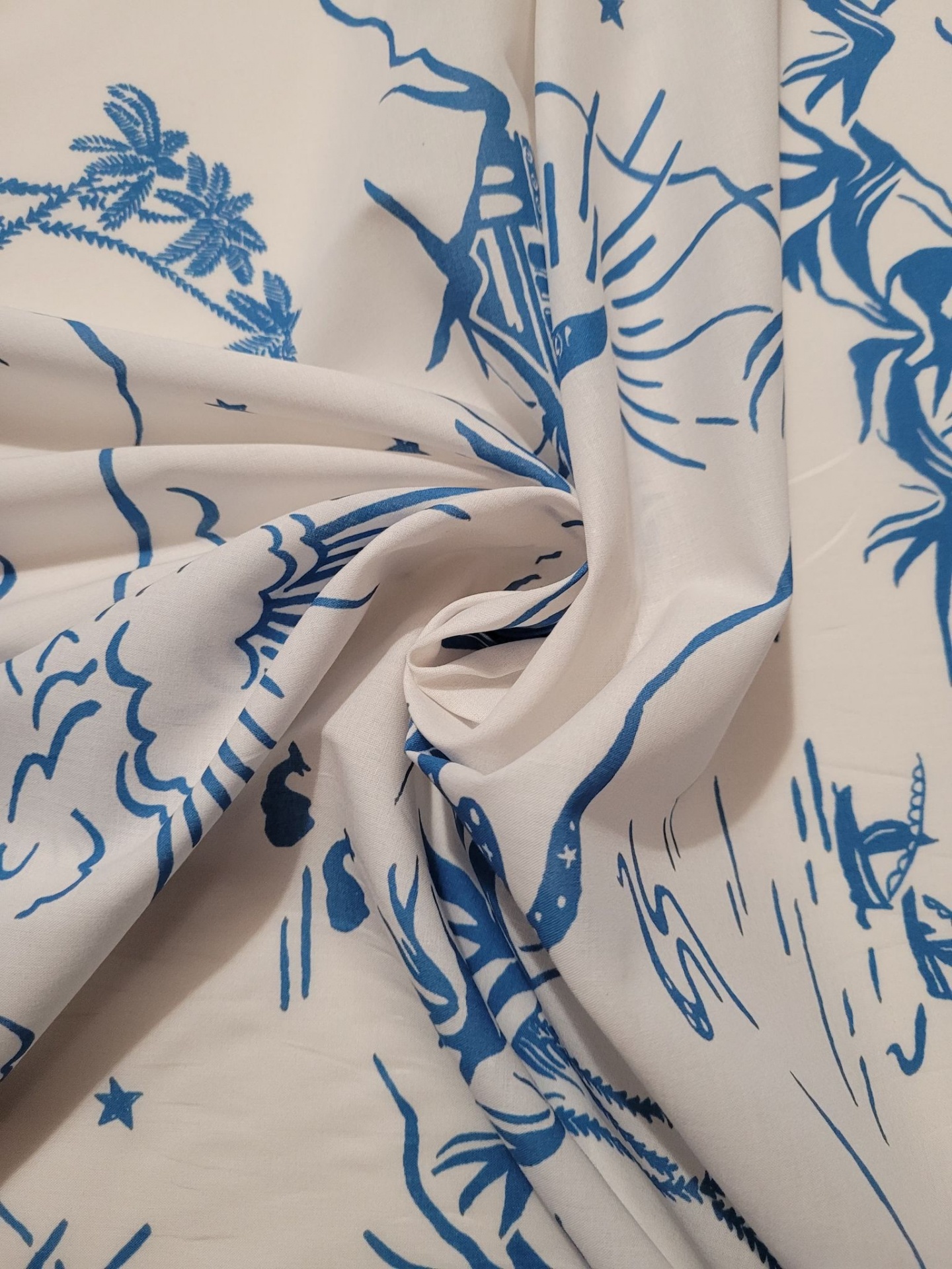 Tissu Coton BLANC DÉSERT BLEU