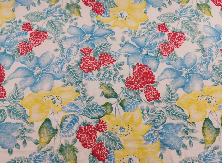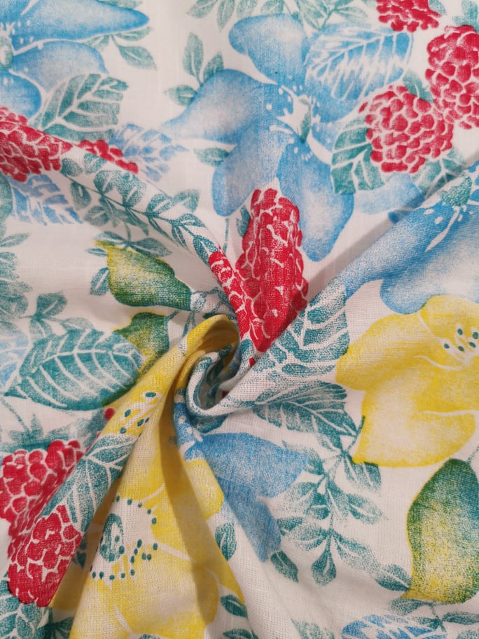 Motif floral, toucher agréable, frais, robuste, bonne coupe